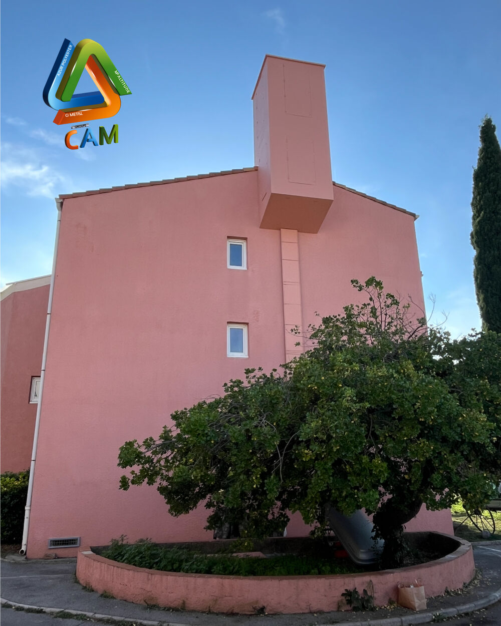 MP Altitude a clôturé le projet à l’aide d’une nacelle et d’un camion bras, en installant l'infrastructure métallique et la cheminée murale.